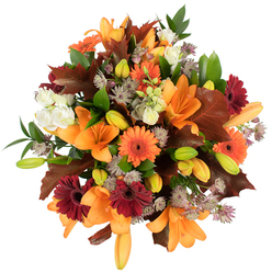As cozy as a countryside cottage, this rich colour mix of roses, chrysanthemums, chamomile and greenery will spread the captivating beauty of the autumn season right inside your home.